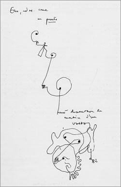 Ecco l'ultimo nato nella numerosa famiglia di personaggi che Gillo Dorfles ha dipinto negli ultimi venticinque anni circa, vale a dire da quando ha ripreso a pieno ritmo l'attività pittorica. Per scherzare, abbiamo voluto provare a descriverlo con fraseggio e terminologia ironicamente pseudo-scientifica, come se non si trattasse di una creatura d'invenzione ma piuttosto di un organismo scoperto da poco, magari con l'ausilio del microscopio elettronico o di altri strumenti che consentono quella visione dell'infinitamente piccolo verso cui Dorfles ha sempre dimostrato una spiccata curiosità e interesse. Una suggestione analoga è offerta infatti da un altro dipinto, Palude (anch'essa dell'estate 2006), un coagulo di forme ameboidi dalla consistenza incerta che sembrano galleggiare nel liquido amniotico e riprodurre uno di quei paesaggi d'aspetto vagamente surreale che si formano sui vetrini in laboratorio. Gillo Dorfles, dicevo, è sempre stato incuriosito da questo genere di visioni di cui ha sottolineato in più occasioni il potenziale immaginifico: "[...] l'uomo è divenuto cosciente di tutto un nuovo ‘panorama’ (quello appunto che Gyorgy Kepes ha definito "New Landscape") che prima dell'avvento di questo medium (la fotografia scientifica) gli era del tutto ignoto. Si tratta dell'immenso frasario di forme che si cela nel microscopio e nel telescopio: le forme – un tempo studiate soltanto dal punto di vista scientifico – dei batteri, degli infusori, delle cellule, degli atomi, dei microcristalli, e quelle remote e gigantesche delle nebulose, delle comete [...] l'uomo che, nella sua rivolta contro il naturalismo pittorico, s'era svincolato dalla rappresentazione del mondo esterno rifugiandosi nella creazione di immagini astratte, senza addentellati con la natura, si vede nuovamente obbligato a tener conto di questa inesauribile fonte di forme, più o meno invisibili a occhio nudo, che costituisce una miniera di inedite e singolari possibilità espressive."
